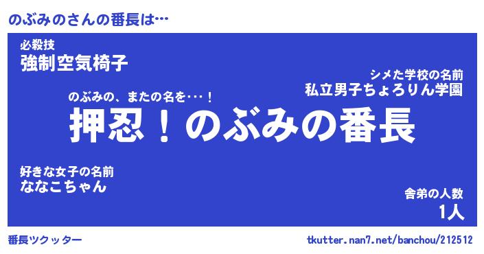 | 意味不明あだ名 | 『ペロリンのぶみの』『永久保存のぶみの』 |