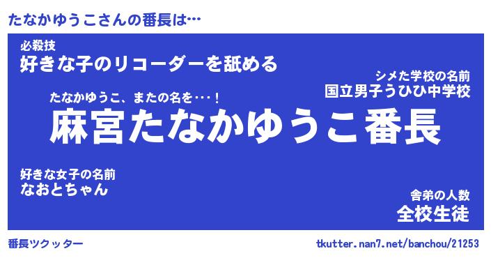| ヘコむあだ名 | 『たなにゅー』『酢こんぶ』 |