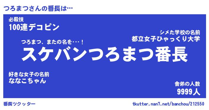 | 意味不明あだ名 | 『ペロリンつろまつ』『永久保存つろまつ』 |