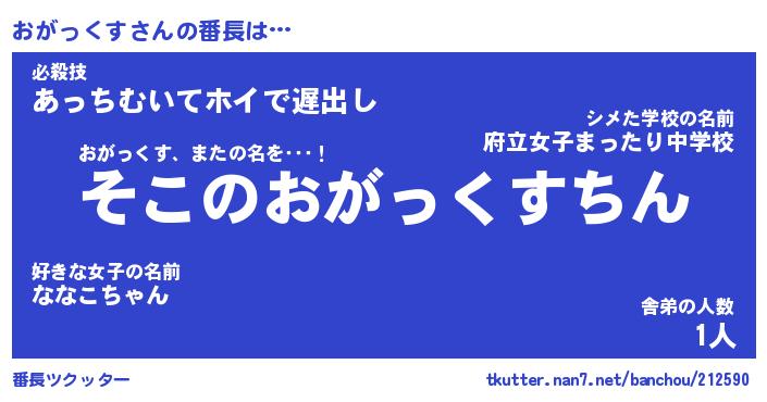 | 男性向けラノベタイトル風あだ名 | 『おがっくすの憂鬱』 |