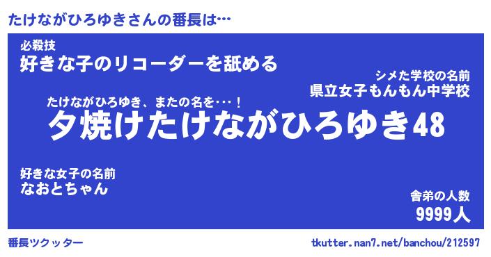 | ヒーロー風カッコイイあだ名 | 『スーパータケナガヒロユキ』 |