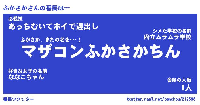 | ヘコむあだ名 | 『ふかにー』『つくし』『ふかお』 |