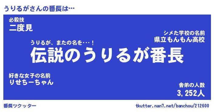 | 男性向けラノベタイトル風あだ名 | 『うりるがの憂鬱』 |