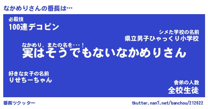 | 伝説のあだ名 | 『封印されしスナイパーなかめり』 |