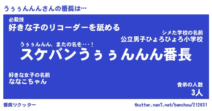 | 2回繰り返すあだ名 | 『うぅうぅ』『ううぅぅ』『なあなあ』 |