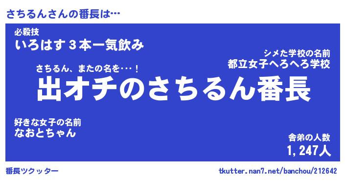 | 伝説のあだ名 | 『伝説のスナイパーさちるん』 |