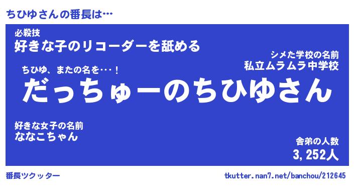 | 伝説のあだ名 | 『伝説のスナイパーちひゆ』 |