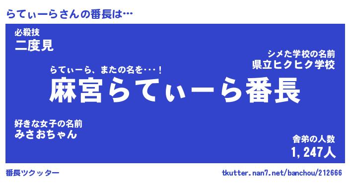 | 恥ずかしいあだ名 | 『プリティーらてぃーら』『らてっちょ』 |