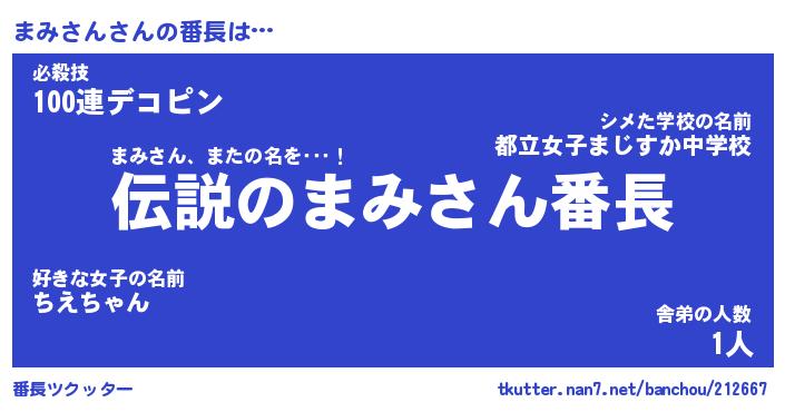 | ピコ太郎風あだ名 | 『マコ四郎』『ピマ三郎』『マミ五郎』 |