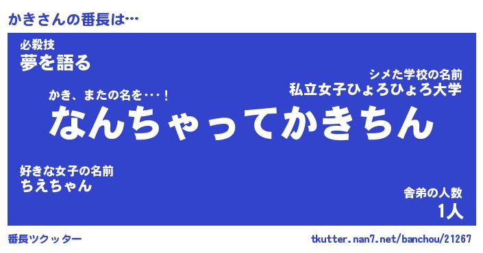 | ファンタジー風あだ名 | 『カキフェル』『エターナルカキー』 |