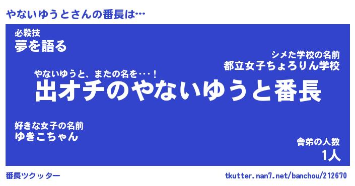 | ヒーロー風カッコイイあだ名 | 『スーパーヤナイユウト』『天弓騎士ヤナ』 |