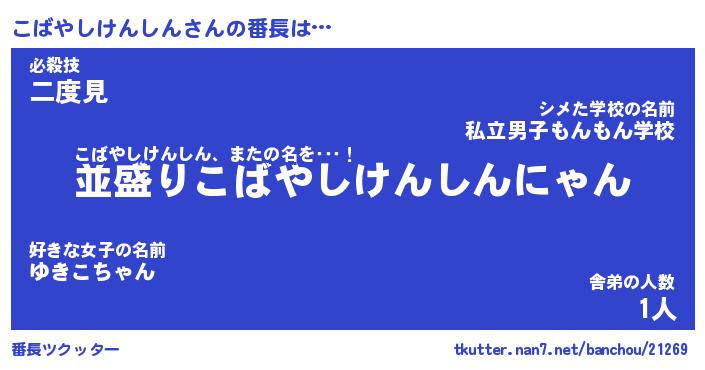 | 男性向けラノベタイトル風あだ名 | 『こばやしけんしんの憂鬱』 |
