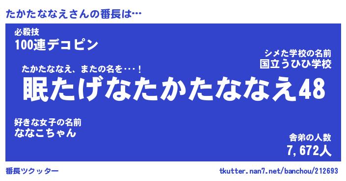 | ヒーロー風カッコイイあだ名 | 『スーパータカタナナエ』『炎刃騎士タカ』 |