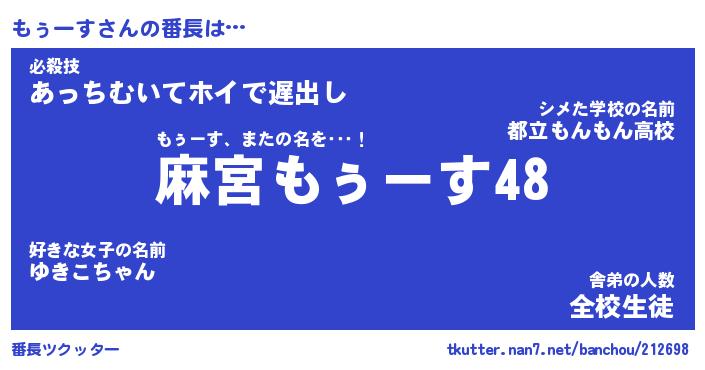 | 意味不明あだ名 | 『ペロリンもぅーす』『永久保存もぅーす』 |
