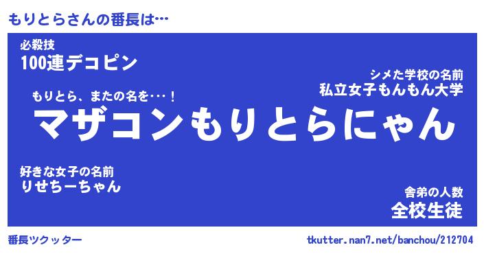 | 意味不明あだ名 | 『ペロリンもりとら』『永久保存もりとら』 |