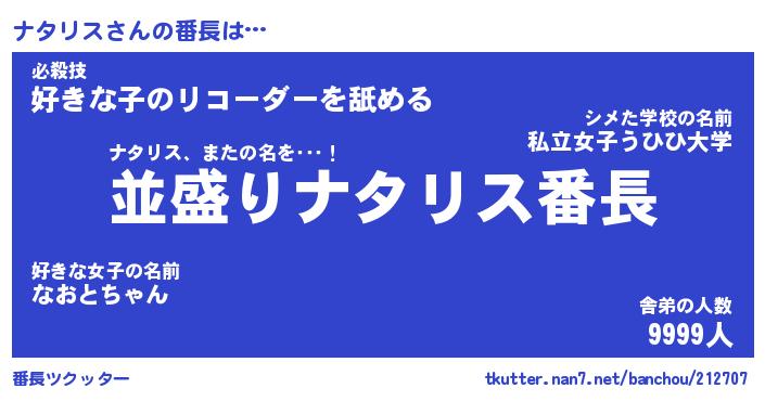 | 意味不明あだ名 | 『ペロリンナタリス』『永久保存ナタリス』 |