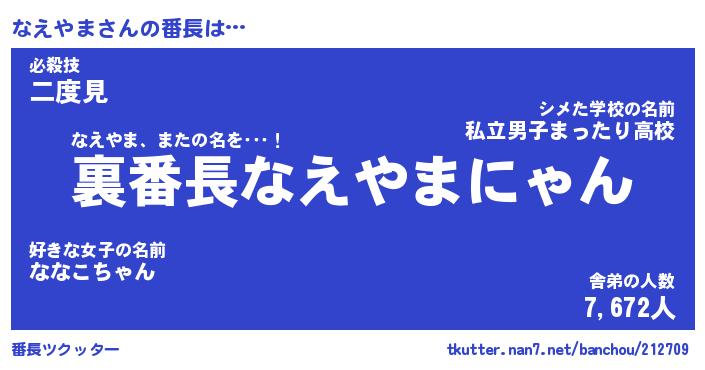 | 2回繰り返すあだ名 | 『なえなえ』『ななええ』『ねちねち』 |