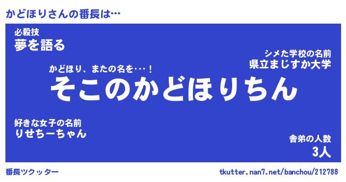 | ヘコむあだ名 | 『かどにゅー』『なまこ酢』 |