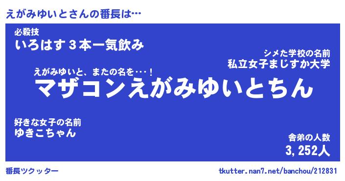 | 伝説のあだ名 | 『封印されしスナイパーえがみゆいと』 |