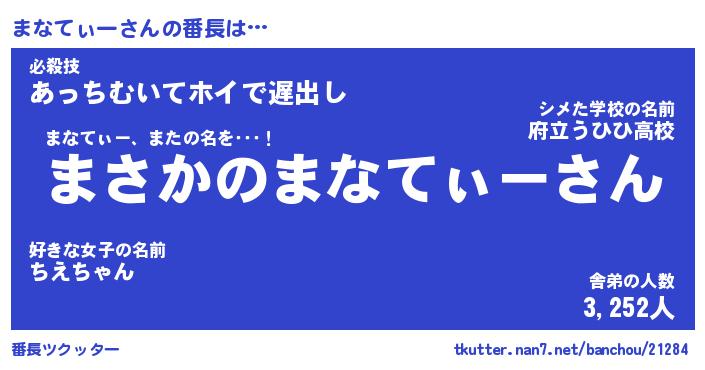 | 欧米人風あだ名 | 『マイケルまなてぃー』 |