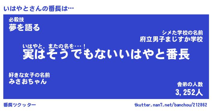 | 肩書あだ名 | 『いはやと社長』『いはやと大統領』 |