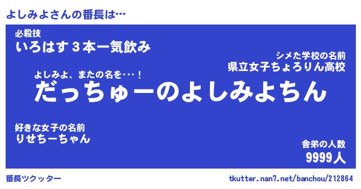 | ポケモン風あだ名 | 『ヨシチュウ』『ヨシミダネ』 |