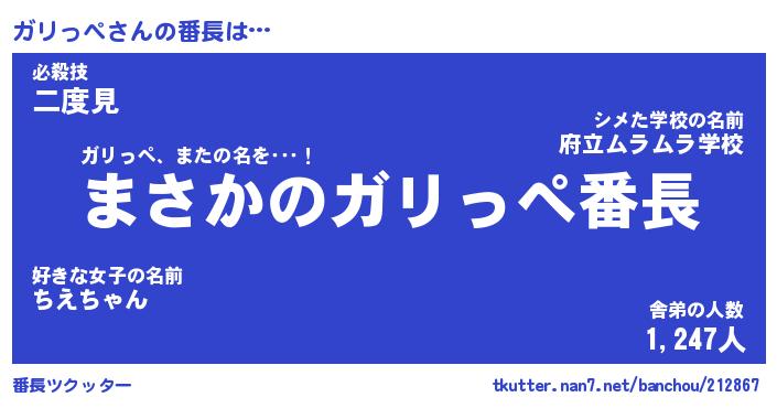 | 伝説のあだ名 | 『伝説のスナイパーガリっぺ』 |