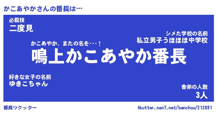| 肩書あだ名 | 『かこあやか御曹司』『かこあやか班長』 |