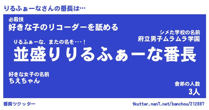 | 意味不明あだ名 | 『ペロリンりるふぁーな』 |
