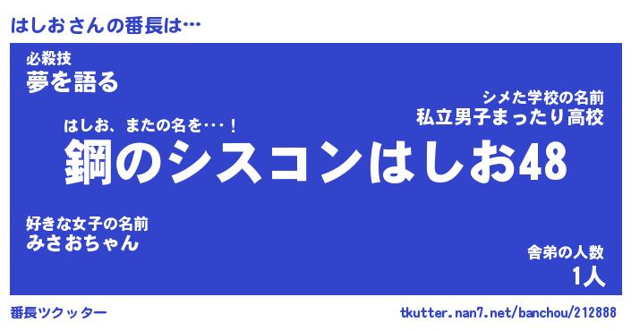 | 意味不明あだ名 | 『ペロリンはしお』『はしおフォーエバー』 |