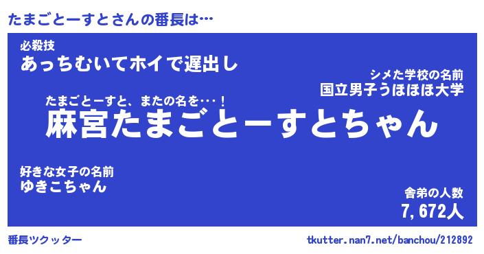 | 2回繰り返すあだ名 | 『たまたま』『たたまま』『ぬれぬれ』 |