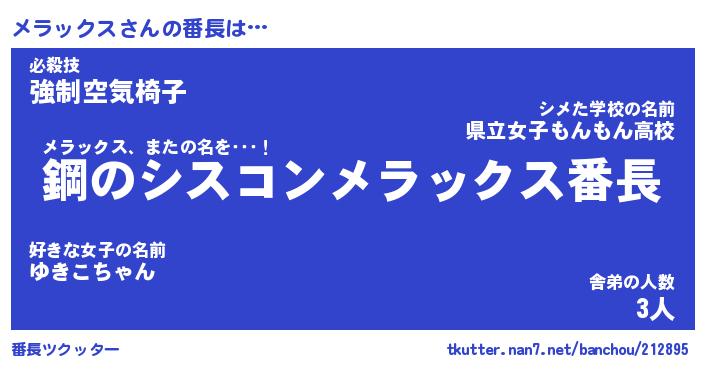 | ヒーロー風カッコイイあだ名 | 『スーパーメラックス』『魔戒騎士メラ』 |