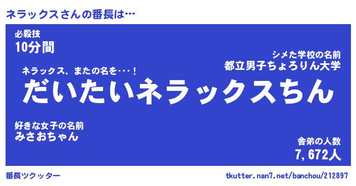 | ヘコむあだ名 | 『ネラにゅー』『牛乳』『ネラを』 |