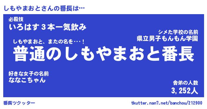 | ヘコむあだ名 | 『しももー』『なまこ酢』『しもっぺ』 |