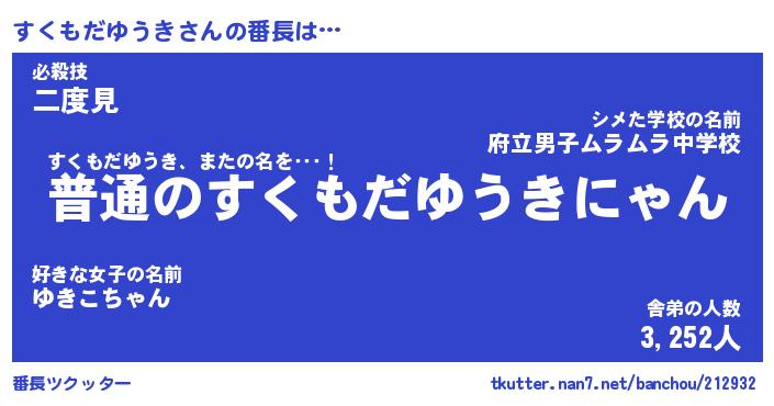 | 男性向けラノベタイトル風あだ名 | 『すくもだゆうきの憂鬱』 |