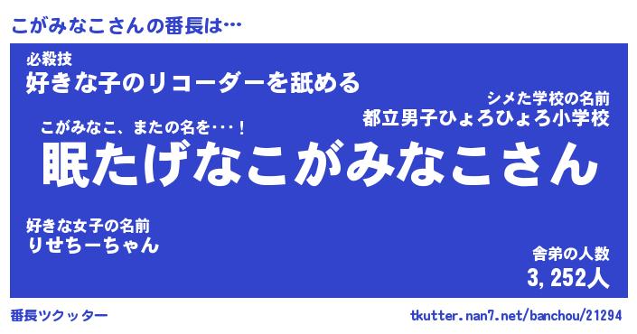 | 肩書あだ名 | 『こがみなこ店長』『こがみなこ国家主席』 |