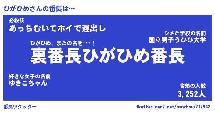 | ヒーロー風カッコイイあだ名 | 『スーパーヒガヒメ』『幻影騎士ヒガ』 |