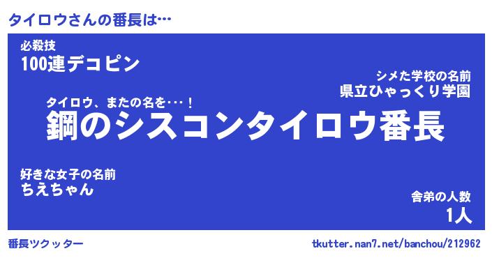 | ヒーロー風カッコイイあだ名 | 『スーパータイロウ』『魔戒騎士タイ』 |