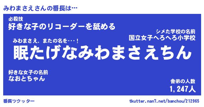 | ファンタジー風あだ名 | 『ミワフェル』『エターナルミワマサエー』 |