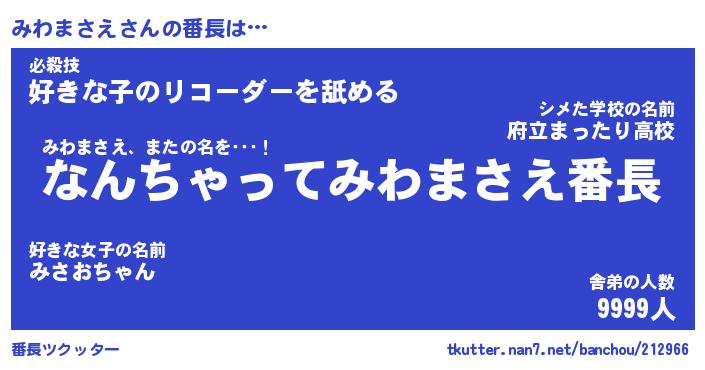 | ファンタジー風あだ名 | 『ミワフェル』『エターナルミワマサエー』 |