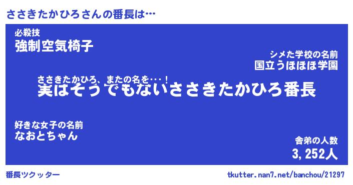 | 伝説のあだ名 | 『封印されしスナイパーささきたかひろ』 |