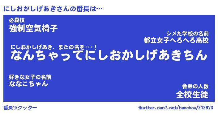 | 肩書あだ名 | 『にしおかしげあき店長』 |