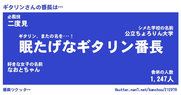 | 伝説のあだ名 | 『封印されしスナイパーギタリン』 |