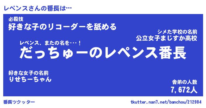 | 意味不明あだ名 | 『ペロリンレペンス』『永久保存レペンス』 |