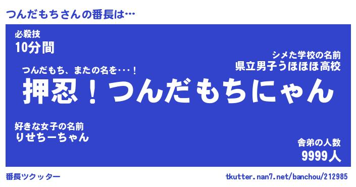 | ヒーロー風カッコイイあだ名 | 『スーパーツンダモチ』『天弓騎士ツン』 |