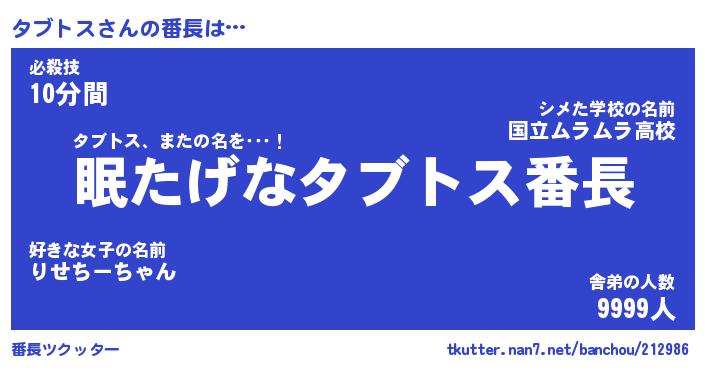 | ファンタジー風あだ名 | 『タブフェル』『エターナルタブトスー』 |