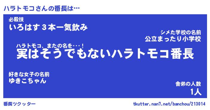 | 伝説のあだ名 | 『封印されしスナイパーハラトモコ』 |