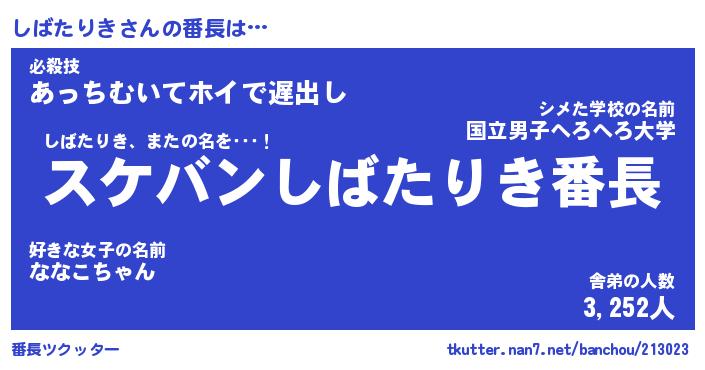 | ファンタジー風あだ名 | 『シバフェル』『エターナルシバタリキー』 |