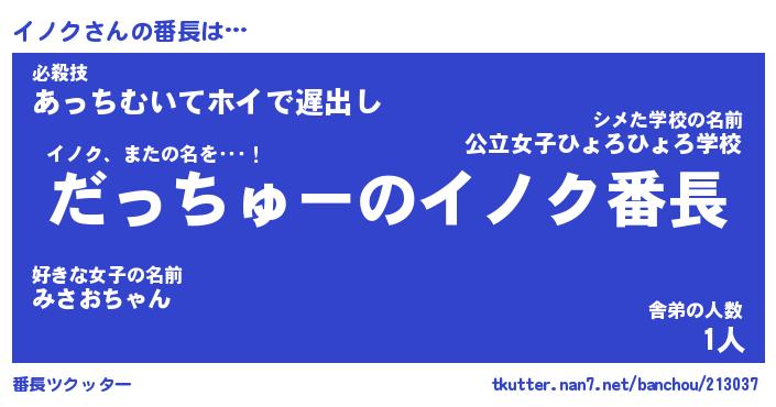 | ポケモン風あだ名 | 『イノチュウ』『イノクダネ』 |