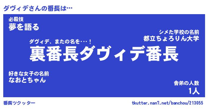 | 意味不明あだ名 | 『ペロリンダヴィデ』『永久保存ダヴィデ』 |